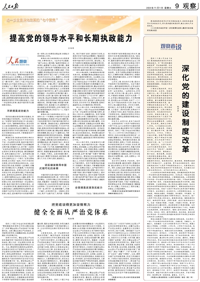 人民日報整版觀察:提高黨的領導水平和長期執政能力 《 人民日報 》( 2024年11月01日 09 版)